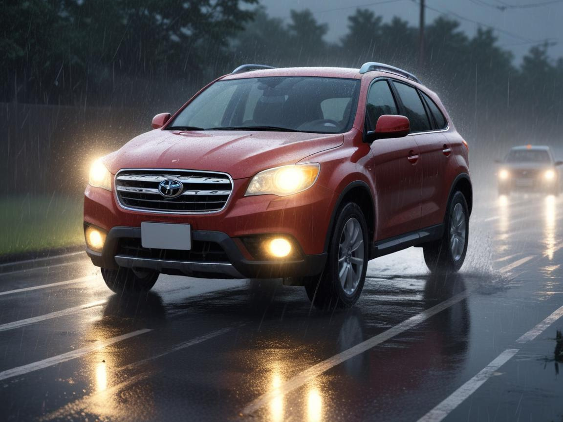في حالات المطر الكثيف، يجب تشغيل الأضواء الأمامية والخلفية للمركبة لزيادة الرؤية. كما يجب الابتعاد عن استخدام الأضواء العالية التي قد تسبب انعكاس الضوء.